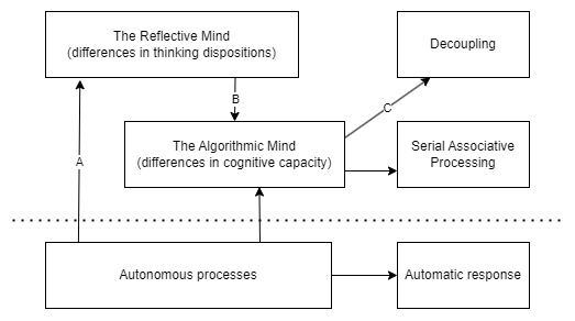 He also divides the type of responses we have even when Type-2 thinking happens: Serial associative cognition and, finally, the cognitive operation of decoupling.